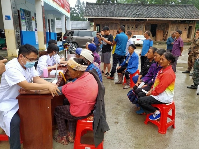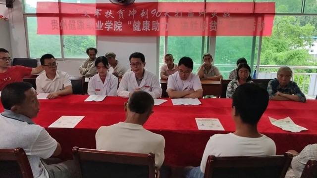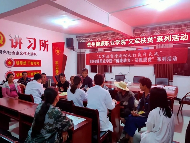 宣讲完后,队员们还为驻村的脱贫攻坚干部和村民们作了健康体检,针对扶贫干部和患病的村民开展靶向式把脉问诊,了解他们的身体状况、病情病因,对他们的生活习惯、治疗方向等提出了针对性的建议。“我就是最近越来越感觉经常头晕头痛,又容易疲劳,测量血压才知道血压偏高。以后要听从老师们建议,保持良好生活习惯才行。”中寨镇大坪村第一书记张文波说。