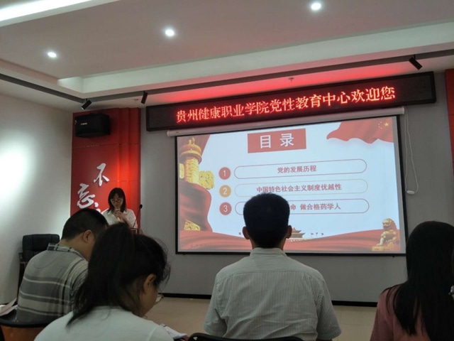 在党性教育中心多功能厅组织开展了以“战疫”当前做新时代“硬核”共产党员为题的专题党课。从党的发展历程,党的集中统一领导、联系群众、全面依法治国、集中力量办大事四个方面论述中国特色社会主义制度的优越性和立足岗位,如何守初心担使命,做合格药学人等三方面进行了详细解读。