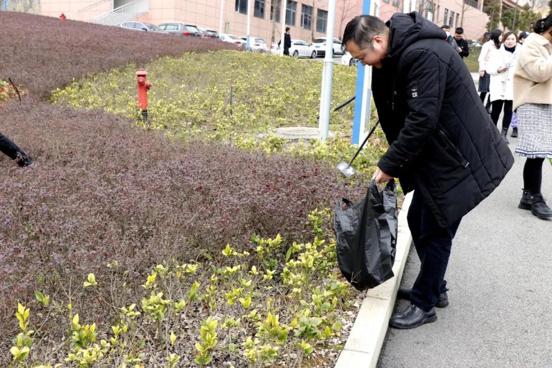 “志愿红”扮靓文明校园,文明风润物无声。当天中午,在学院教学楼、公共广场、学生宿舍楼、草坪绿地等校园文明行志愿服务活动现场,300余名志愿者们经过简单分工,对烟头、果皮、塑料袋、废弃物等垃圾进行地毯式清理。春日暖阳沐浴下,机关第一支部、第二支部、第三支部、第四支部的党旗和各系志愿服务队的红旗随风飘扬,校园的风景格外靓丽。