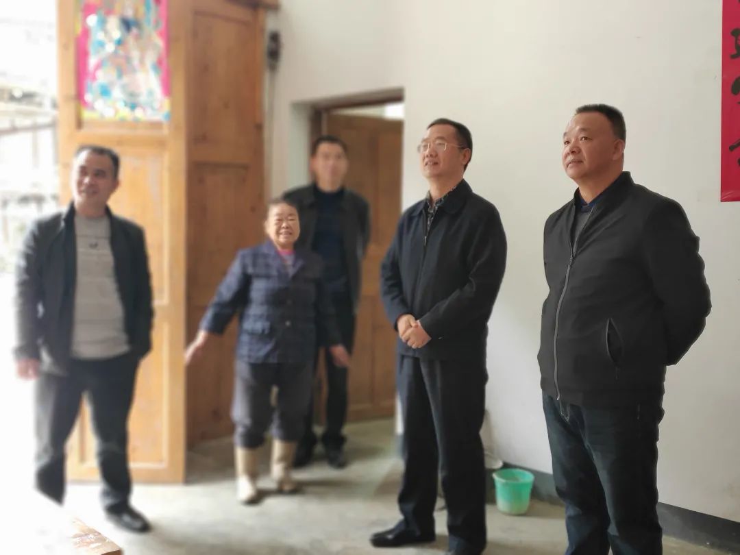 吴国才听取了村支部书记和村主任对发展的想法,也听了他们对曾小俊的评价后,他要去走访群众。曾小俊负责带路,大家去了后龙组。路旁一家门户虚掩着,吴国才就选了这家。曾小俊边推门边高喊“周哥,你在家吗?”这是村民周道忠家,曾小俊进出却像是在自己兄弟家一般。吴国才欣慰一笑,看来学院老师在基层能和村民“打成一片”。又去了姚茂昌家。这个70多岁的老人,他的妻子什么病情,几个儿子,何时娶的儿媳妇,住房如何整合危房改造和“改厨改卫”项目新建的等等,曾小俊一一跟吴国才细细道来。再提起村里的产业发展,从大户带动种西瓜和草莓到合作社种生姜增收等,曾小俊更是如数家珍。