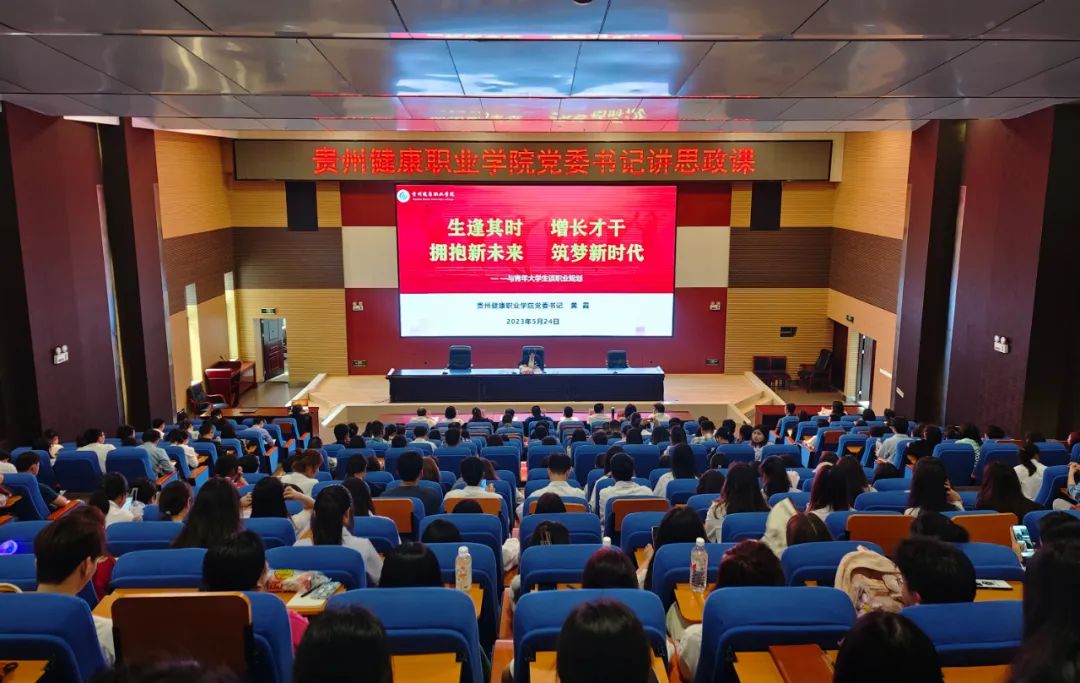 5月24日,学院党委书记黄霞在学术报告厅为师生讲授思政课,与即将离校实习的学子们话责任,述担当,寄期望。2021级学生代表,以及党委学工部、招就处、继续教育部、三系等部门人员和专兼职辅导员聆听授课。