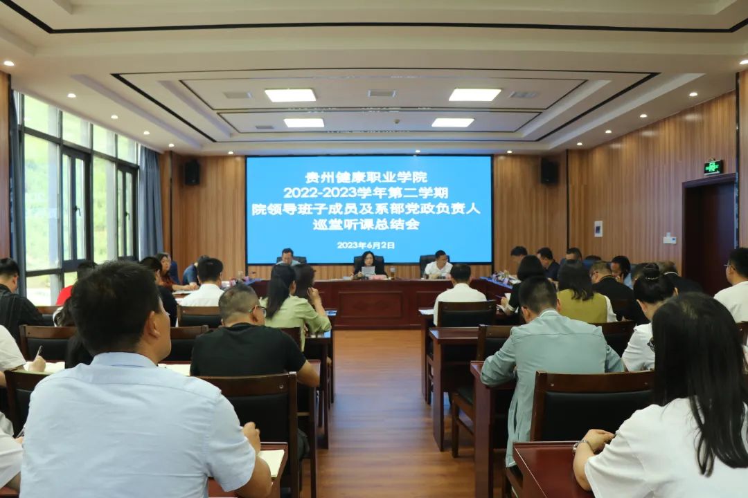 6月2日,我院召开2022—2023学年第二学期领导班子及系部党政负责人巡堂听课总结会。党委书记黄霞主持会议并讲话,党委副书记、院长吴国才及学院领导班子成员出席会议,各系党政负责人,各巡堂听课小组成员、被听课教师等参加会议。