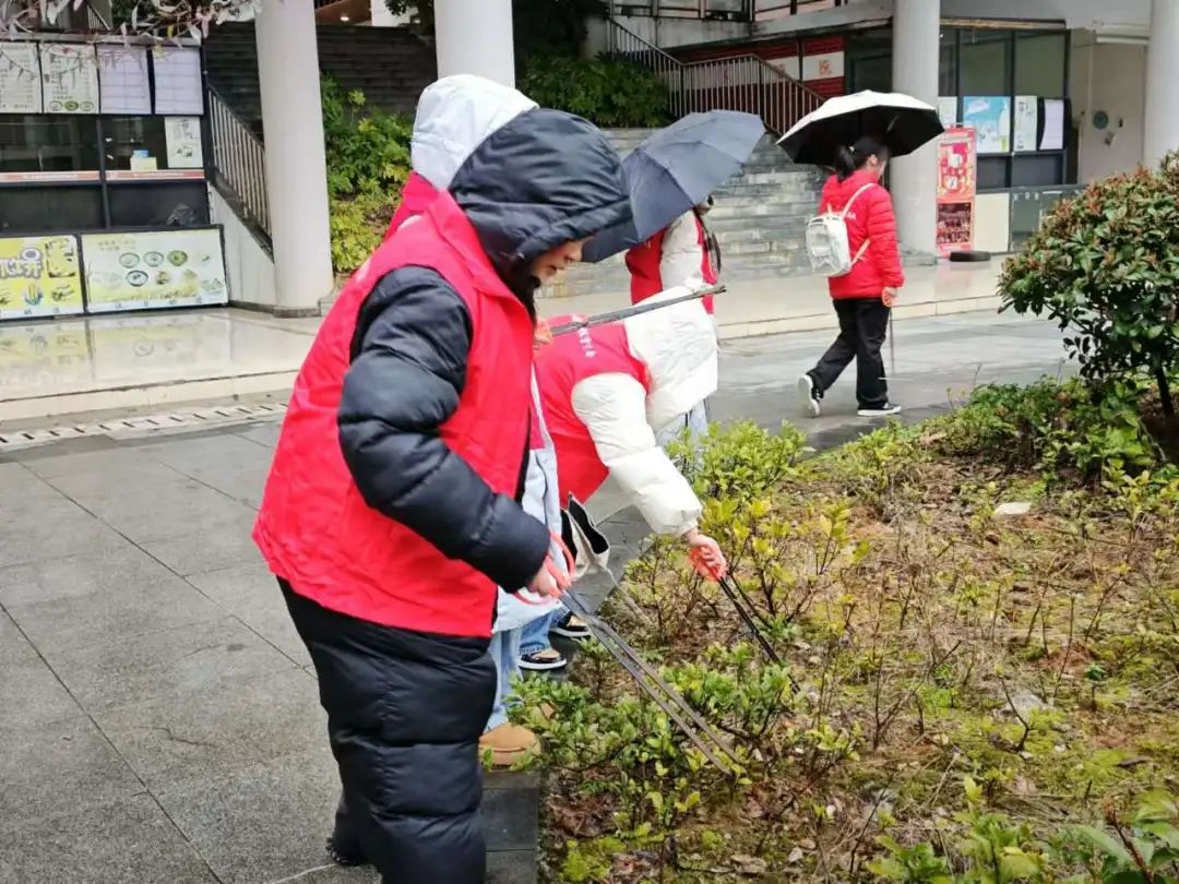 启动仪式结束后,各志愿服务队在校内开展了“文明于心·清洁于行”志愿服务活动。