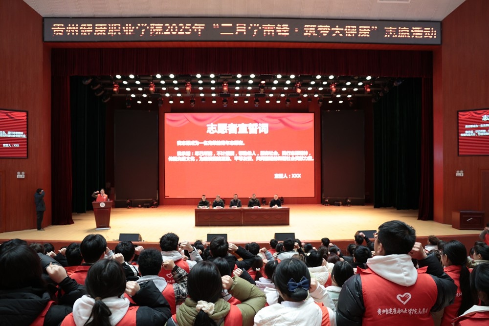 3月5日,beat365在大礼堂举行2025年“三月学雷锋·筑梦大健康”志愿活动月启动仪式。院党委副书记李黔军出席,各系党总支书记、团总支书记及师生志愿者代表300人参加仪式。