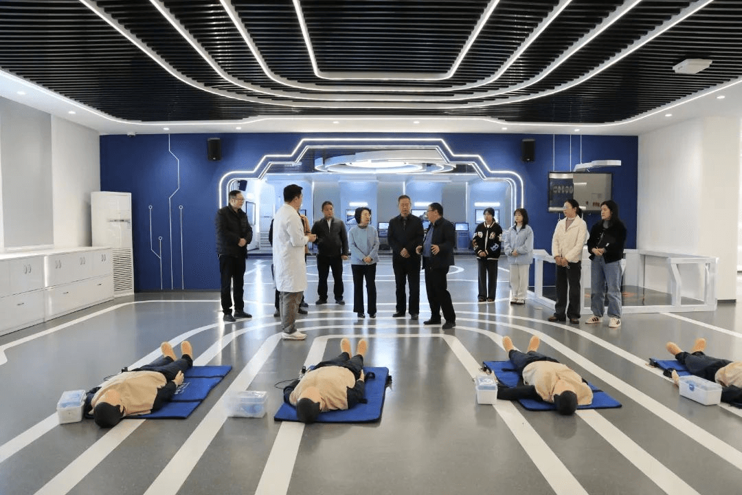 会前,杨萍一行实地参观了学校生命科学楼、大健康虚拟仿真实训基地、急救实训室等地。