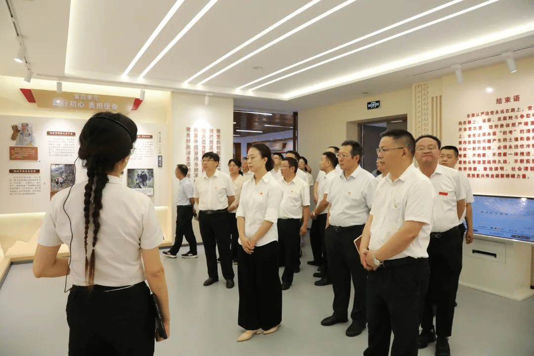 在解说员引导下,大家参观了“炼就金钟罩——不忘初心、牢记使命”“筑牢反腐墙——自我革命、作之不止”“守稳压舱石——以案为鉴、自警自省”“常怀律己心——怀德自重、提升觉悟”等展厅,通过观看图文展板、警示教育片和典型案例剖析,深入了解了党的十八大以来党风廉政建设和反腐败斗争的显著成效。