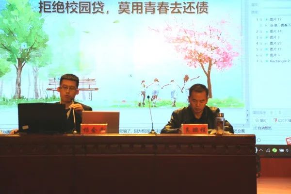 本次讲座邀请到贵阳银行经理杨会雨对电信诈骗、非法校园网贷、反洗钱等方面知识作了专题讲座。吴鹏程结合实际就消防安全、禁毒防艾、食品安全、交通安全、预防欺凌、预防性侵等安全常识和预防技能进行详细讲解,并播放了安全警示教育片。