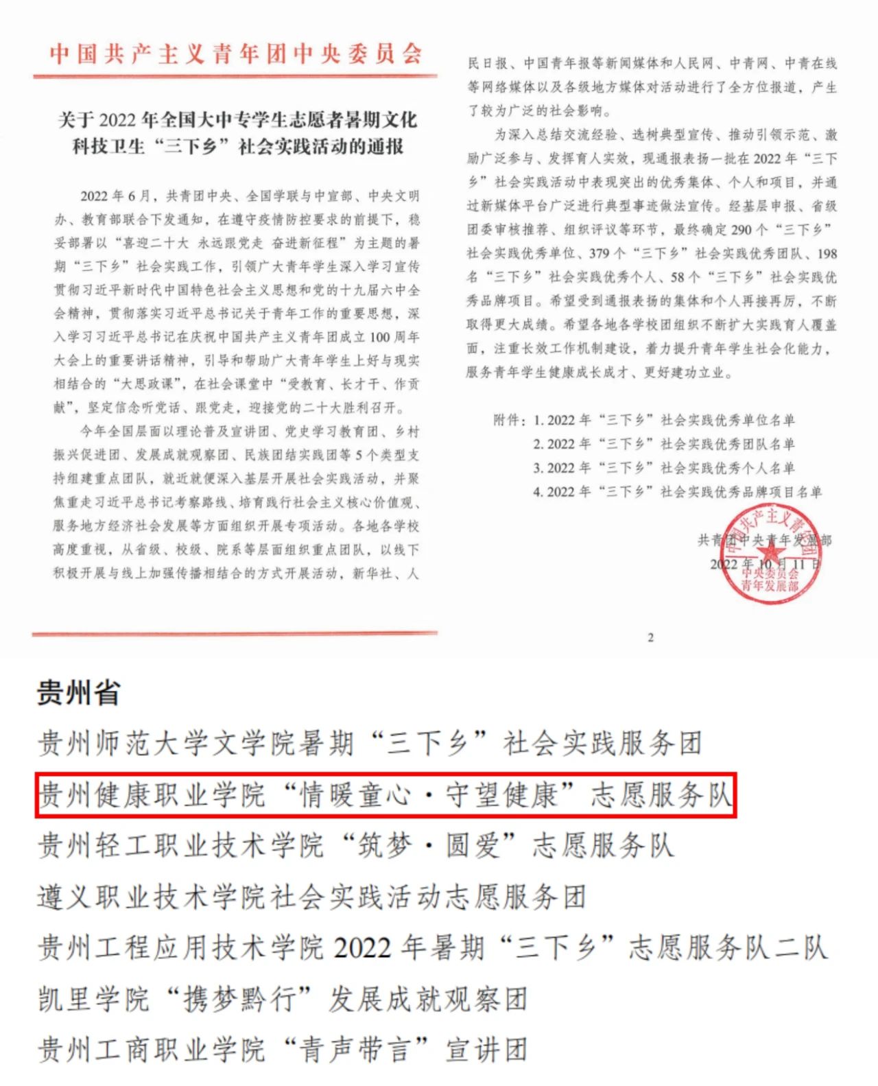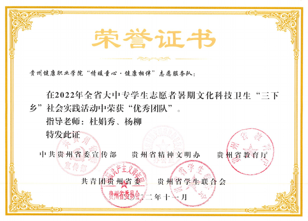 健康管理系将志愿服务作为党建带团建的重要抓手,培养学生感恩意识和奉献精神。积极组织发动广大青年大学生通过暑假期“三下乡”社会实践发挥专业优势服务社会。来自黄大发的寄语。2022年暑假,健康管理系团总支到遵义市播州区与播州区青年志愿者协会开展交流学习,前往该区平正仡佬族乡团结村开展志愿服务活动,活动中志愿者细心地为“七一勋章”“全国劳动模范”“时代楷模”“全国道德模范”称号获得者黄大发及当地群众测量血压、做艾灸和健康科普宣传,深受群众欢迎。活动开展后,“黄爷爷”寄语beat365在线唯一官网登录厚生黔行志愿服务队的同学们,充分肯定了健康管理系学子的志愿服务工作,同时得到微铜仁视频号和中共贵州省委组织部贵州党建云关注。受到团中央的表彰。2022年,健康管理系大学生暑期“三下乡”活动成果显著,多个优秀团队、优秀品牌项目,多名优秀指导教师和优秀学生志愿者获得省、市、院表彰表扬,“情暖童心•守望健康”志愿服务队荣获团中央授予的2022年全国大中专学生志愿者暑期文化科技卫生“三下乡”社会实践优秀团队荣誉称号。