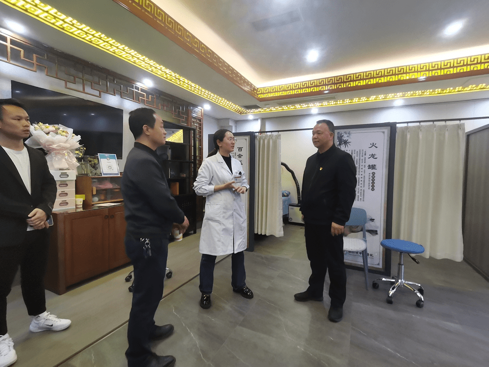 党支部书记周斌同志带领全体同志前往梵净医馆参观了中医特色治疗区、健康大讲堂、健康体检区等,详细了解医馆的建设情况、运营情况,以及铜仁道地中药材资源的对外展览、储备及人才需求,并就我系中医学专业学生的志愿活动及院校合作相关事宜进行了座谈交流。