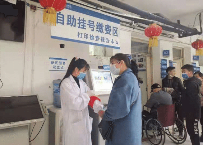 罗菊正在为就诊人员服务