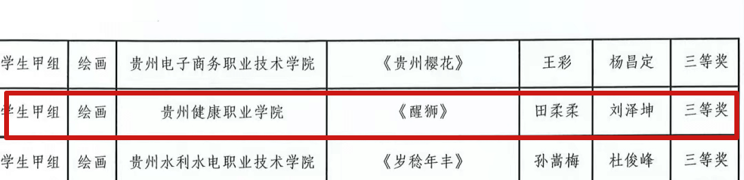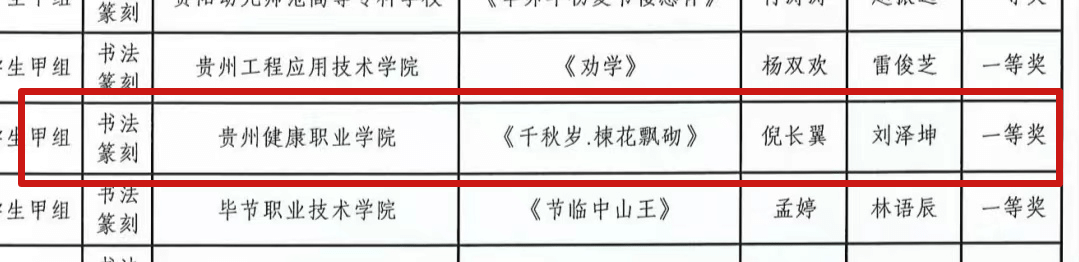 近日,省教育厅公布了全省第七届大学生艺术展演活动暨全省首届“美的教育”高校师生书画设计作品展活动评选结果,我院在65所高校、2500项报送作品中脱颖而出,共荣获7项奖项,其中,一等奖3项、二等奖2项、三等奖2项。