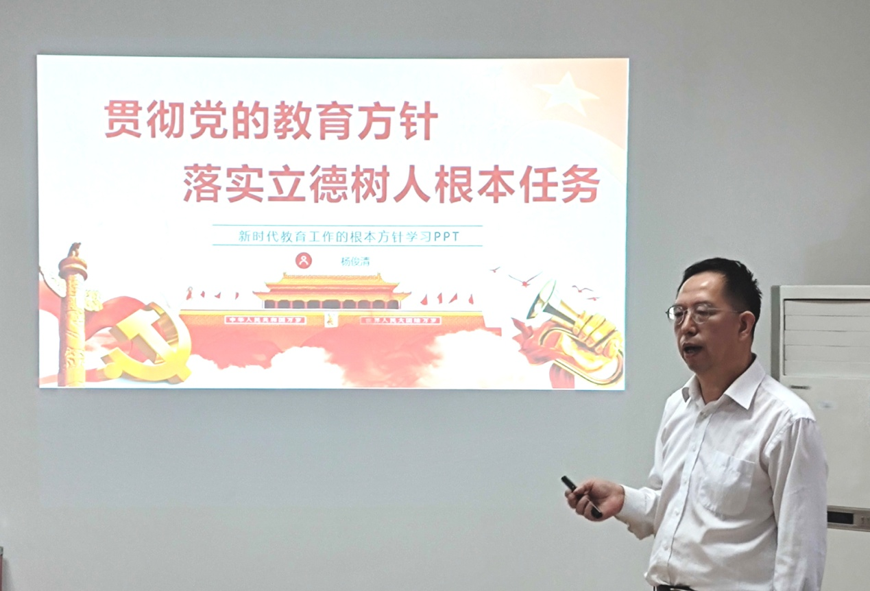 杨俊清首先从“新中国社会主义教育方针的提出和形成”及“中国特色社会主义教育方针的发展与完善”等两个部分,介绍了党的教育方针在不同历史阶段的发展和变化;在第三部分“新时代党的教育方针的总要求和特点”中,杨俊清指出,扎根中国大地办教育是习近平总书记关于教育的重要论述的重要内容,是中国教育发展规律的新认识,是办好中国特色社会主义大学的根本遵循。在第四部分“顺应时代发展需要,不断提升教育教学水平”中,杨俊清结合九游体育官网实际,向教职工汇报了学院下一步工作指导思想,即以工程教育认证和硕士单位申报为抓手,以新一届岗位聘任、聘期年度考核为政策引导,强化引导和服务,为学院高质量发展奠定扎实基础。