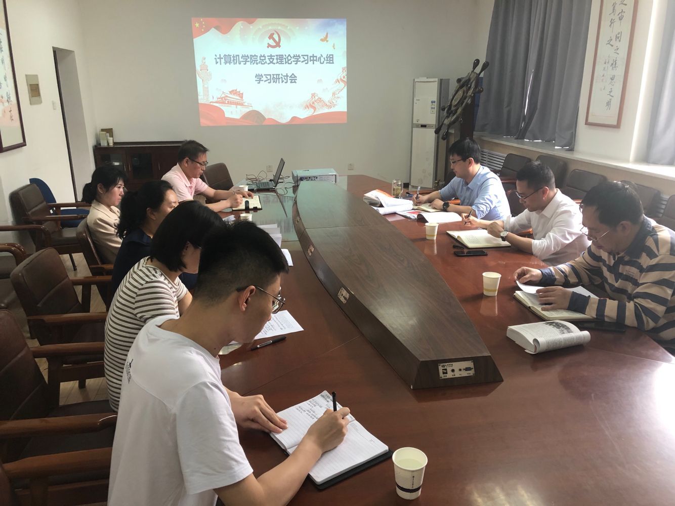 按照九游体育官网党总支2021年理论学习中心组学习计划,九游体育官网党总支于5月21日上午10:00在莲湖校区教学北楼319举行了理论学习中心组交流研讨会,主题为 “习近平总书记在党史学习教育动员大会上的重要讲话”和“新民主主义革命时期历史”的学习交流。党总支书记胡红亮主持会议,学校党委宣传部副部长战非到会指导,理论学习中心组全体成员参加。