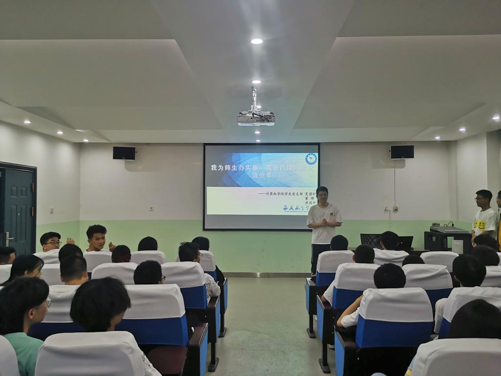 本次活动邀请了学生党员夏国轩、董博,学生代表焦国祥三位学长,他们英语四级成绩均以500分以上的高分通过,交流会上,三位学长分别从英语四级考试流程、题型、答题技巧、词汇记忆方法等方面进行了经验分享和交流,并现场解答了大家的问题。