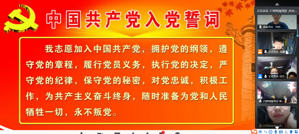 6月30日晚,九游体育官网学生党支部组织学生预备党员于线上举行了入党宣誓仪式。