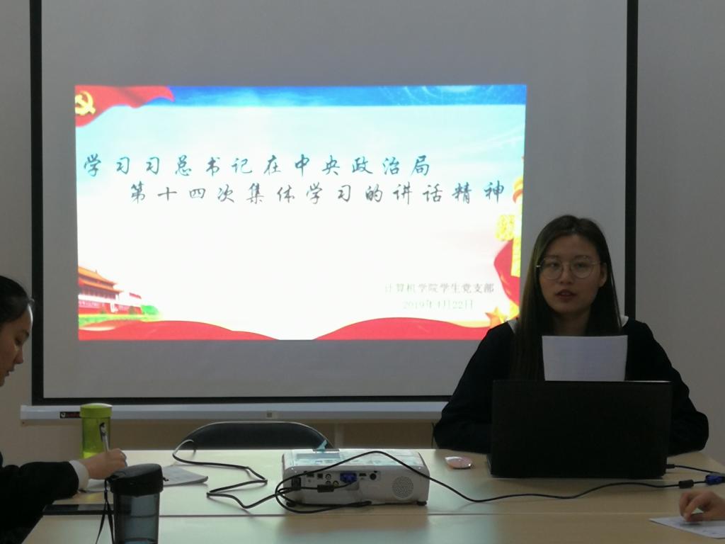 4月22日,九游体育官网学生党支部组织发展对象、积极分子和团员代表学习“习近平总书记在中央政治局第十四次集体学习的讲话”精神。