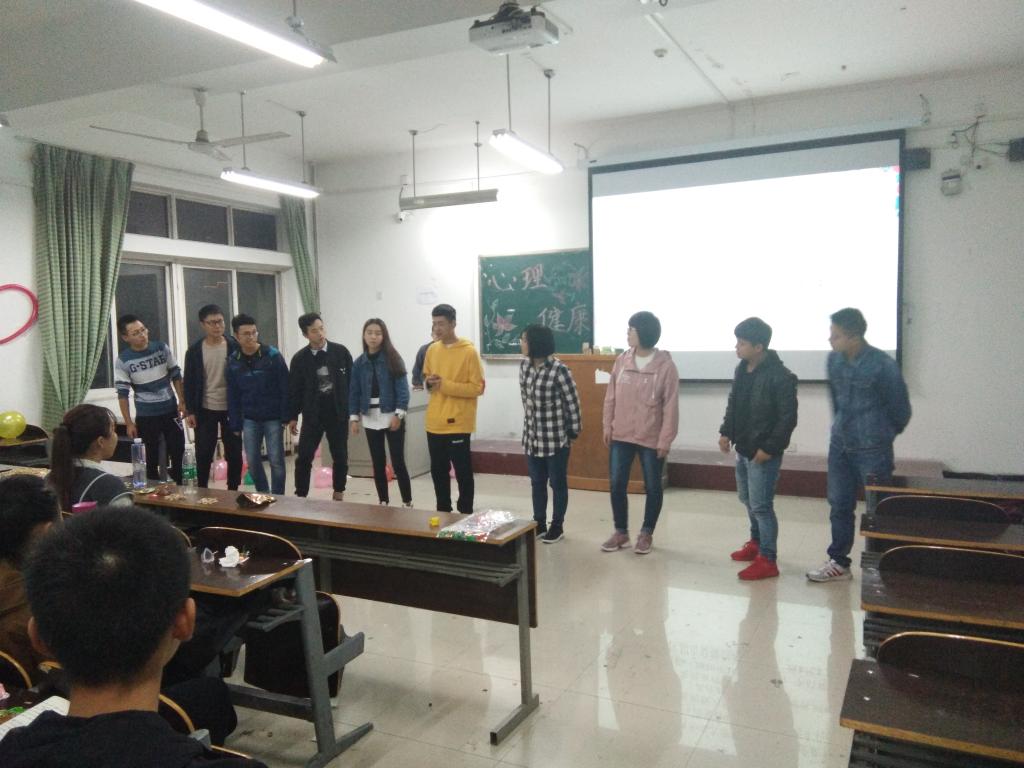活动开始,各班心理委员及其他班委结合生活实际,为大家介绍了心理压力排解、调解情绪的重要性;之后通过情景剧的表演,各班针对大学如何合理安排时间、大学期间逃课问题、主攻学习还是参加社团、如何处理舍友之间的关系等问题,进行了讨论和发言;随后,各班积极开展了心理小游戏,以锻炼大家的心理忍耐极限,练习减压舒缓释放情绪。最后,活动在大家的欢笑声和阵阵掌声中圆满结束。