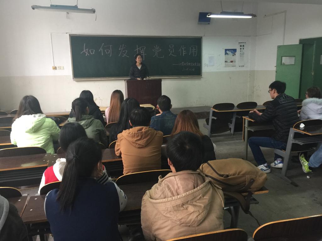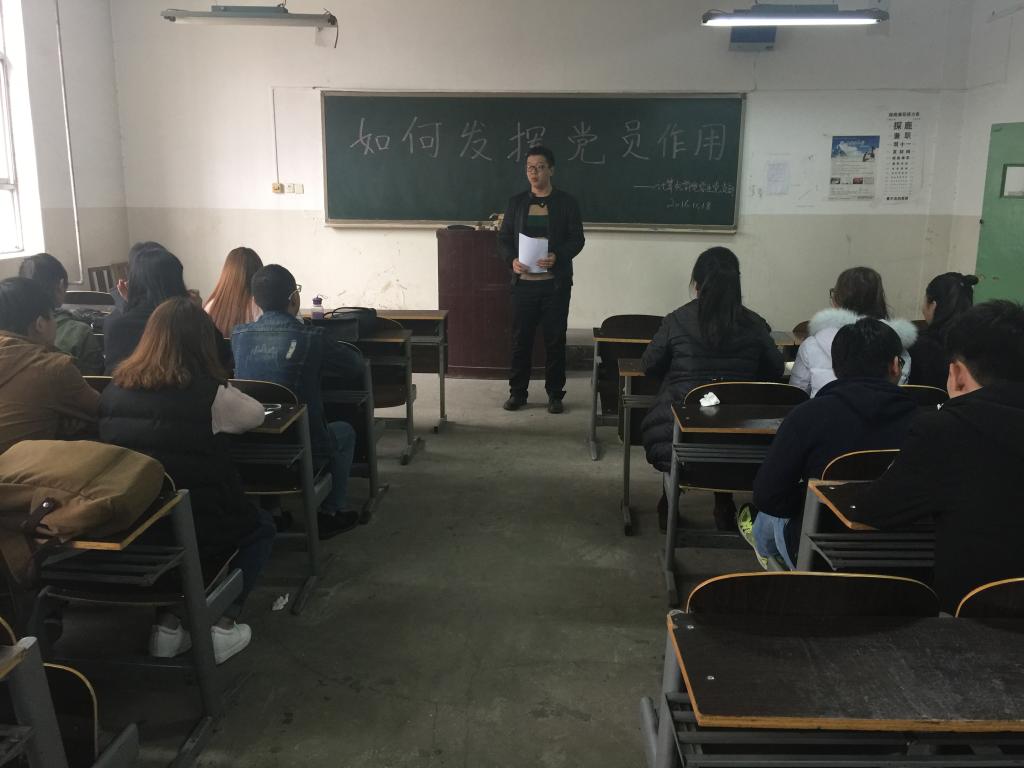 首先,米嘉琪向大家传达了《中共九游体育官网委员会民主评议党员制度的实施办法》的通知,从自我评价、民主评议、组织考察、确定评议档次四个方面部署了2016年度学生党员的民主评议工作,要求全体党员在评议准备阶段认真学习《党章》和习近平总书记重要讲话,提高思想认识,端正评议态度,对自己一年来的各方面表现进行综合的检查和评价,努力做到求真务实,共同提高。接着,米嘉琪结合“两学一做”学习教育活动,就如何发挥党员作用进行讲述,希望大家认真学习领会“两学一做”精神,进一步提高党员思想觉悟;持之以恒地践行“两学一做”,把党员的先锋形象树起来;拓宽发挥渠道,推动“两学一做”取得实效,可以由党员牵头开展《党章》、准则、条例知识竞赛,激发其他同学的学习兴趣。最后,学生党员纷纷上台表达了自己的观点:践行“两学一做”并非一朝一夕,而是一个持久过程,只有党员真正接收,主动践行,才能充分发挥党员先锋模范作用,更好地服务大家。