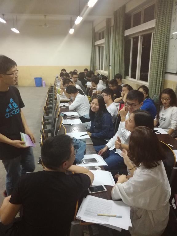 本次座谈会将75名党员和积极分子分为7个组,讨论题分别是:“如何深刻领会习近平总书记系列讲话精神的核心要义?”;“共产党员如何以实际行动做到‘保证党内团结’?”;“如何深刻理解习近平总书记系列讲话中坚持和发展中国特色社会主义这个主题?”;“结合实际,谈谈如何认识开展‘两学一做’专题教育的实践要求。”;“谈谈如何深刻领会实现中华民族伟大复兴的中国梦这个理想目标?”;“大学生党员对党性的理解及其自己应该怎么做?”;“谈谈为什么党员必须把学习党章作为必修课?”;“谈谈如何学习贯彻《中国共产党廉洁自律准则》和《中国共产党几率处分条例》,做一名合格党员?”。各组同学就自己的讨论题展开热烈的讨论,随后各派出一人面对大家进行全方位、深层次的发言,分享学习的心得体会后。