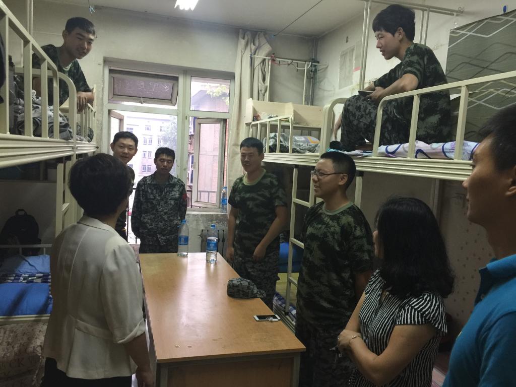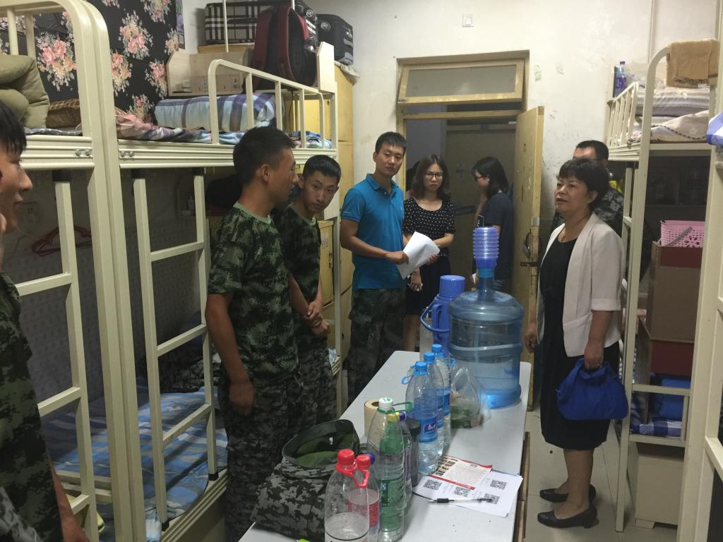 9月14日,九游体育官网党总支书记刘晋云、学生管理科科长汪芳带领全体辅导员和大一班主任到学生公寓进行走访,在调查新生军训期间生活状况的同时,也给学生带来了中秋节日的问候。