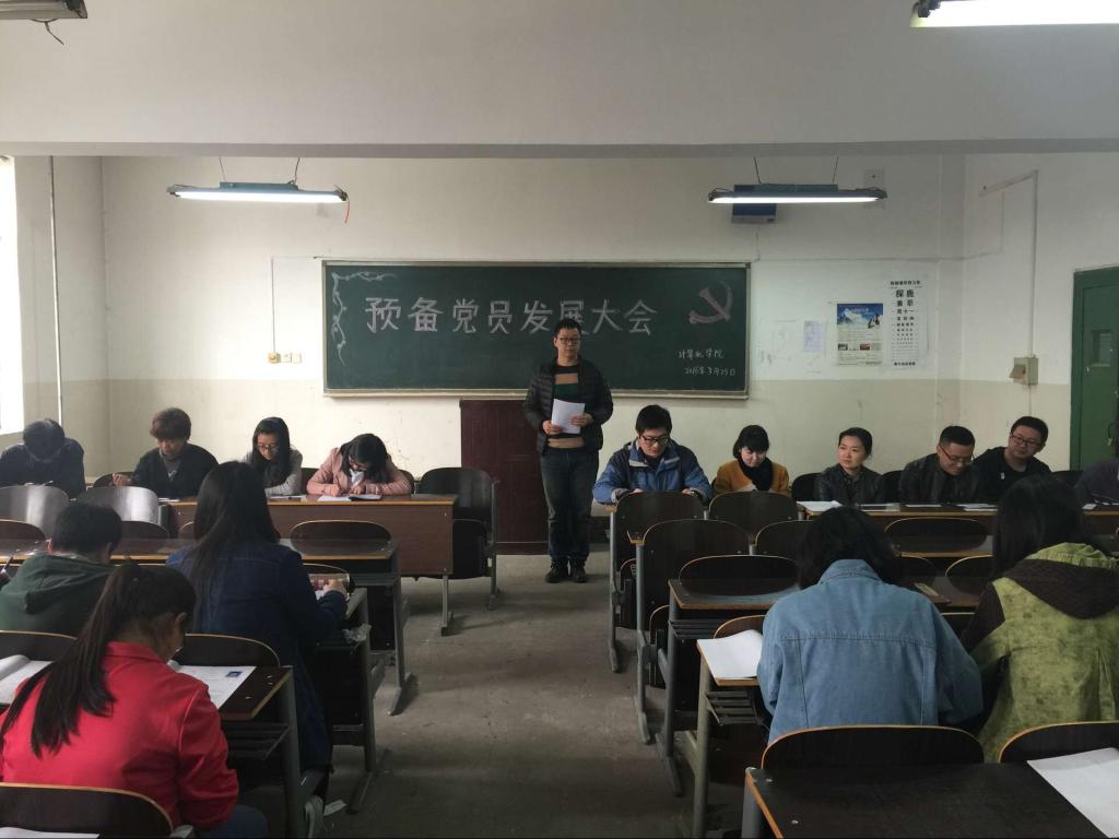 2016年3月25日,九游体育官网学生党支部在北233教室召开了预备党员发展大会,讨论来玉凤等二十位同学发展为预备党员的相关事宜。大会由学生党支部书记汪芳主持,学院党总支书记刘晋云、学生党支部委员米嘉琪、王靖晶及各培养人出席此次大会。