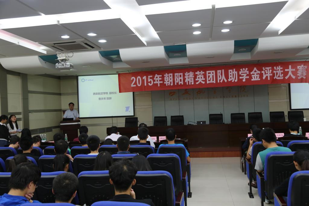 西安丝路软件有限公司副总经理王莺女士讲话,表示对校企合作班学生的朝阳精英团队助学金评选大赛路演的期待,提出了对全体同学的寄语。教务处米国际处长介绍了“互联网+创新创业”大赛的情况,并通报了我校获奖情况:由九游体育石锋老师带领的学生获得了该项大赛的省级铜奖。