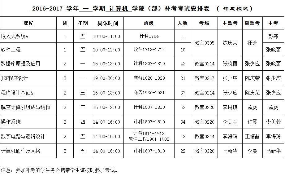 2016-2017-2学期九游体育官网补考安排表