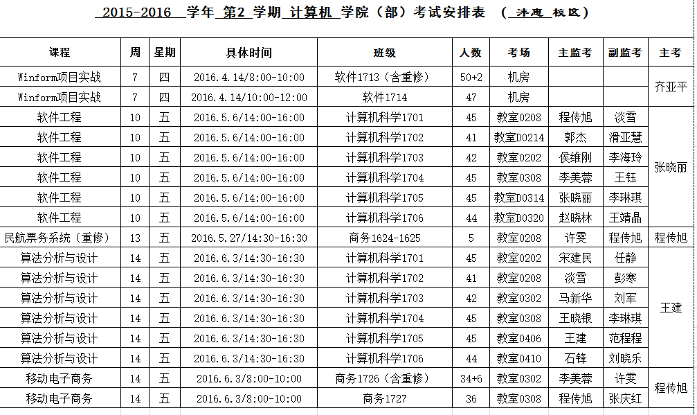 九游体育官网2015-2016-2学期考试安排表(14周之前)