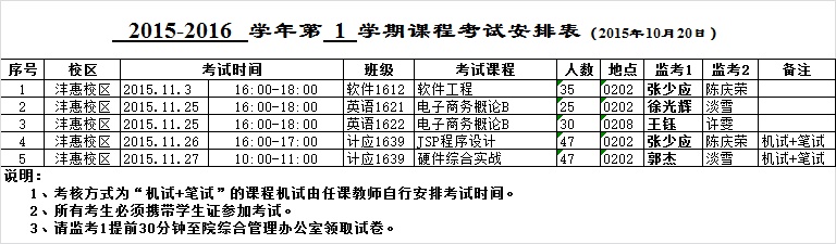 九游体育官网2015-2016-1学期考试安排(一)