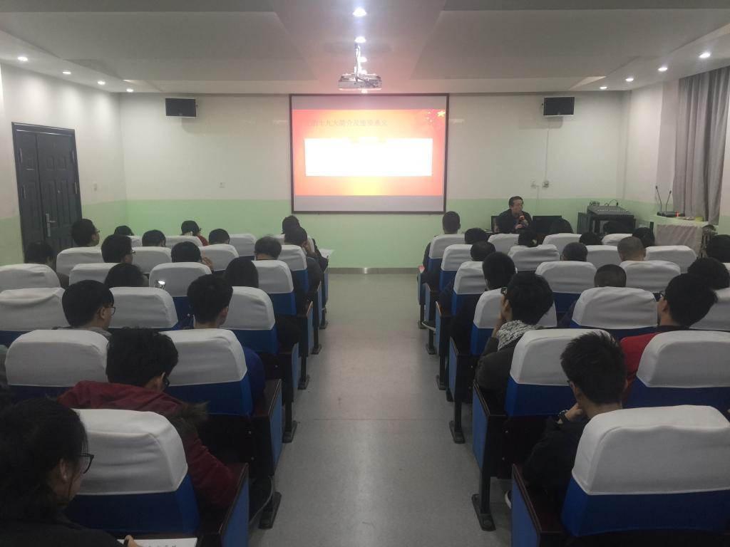 为了深入学习十九大报告,11月24日下午,九游体育官网在沣惠校区教学南楼108报告厅召开学习十九大精神专题报告会。此次邀请了我校党的十九大精神宣讲组成员、思政部副部长张雷作专题报告。会议由九游体育官网院长杨俊清主持,全体教师和学生党员共90余人参加了会议。