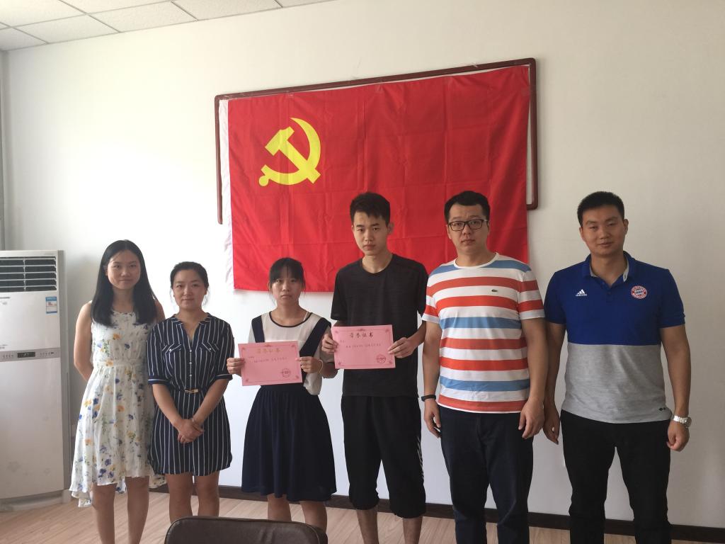 大会开始,全体起立齐唱《国际歌》,在米嘉琪的带领下,11名新党员面向党旗进行了庄严的宣誓,表达了自己为共产主义理想奋斗终身的决心。新党员代表汤鸣炎在发言中表示:作为学生党员应树立远大理想,勇于追求真理,为同学们树立榜样;会牢记誓词,将誓词深入内心,将共产主义作为信仰。支部书记汪芳对所有党员提出了三点要求:第一,努力学习,不断提升自己作为一名共产党员的修养,发挥模范带头作用;第二,提高自己的责任意识和服务意识,勇于承担各项工作;第三,做好表率,用实际行动为学院发展做出更大的努力和更多的贡献。最后,大会授予汤鸣焱、李浩2名同学“优秀学生党员”称号。