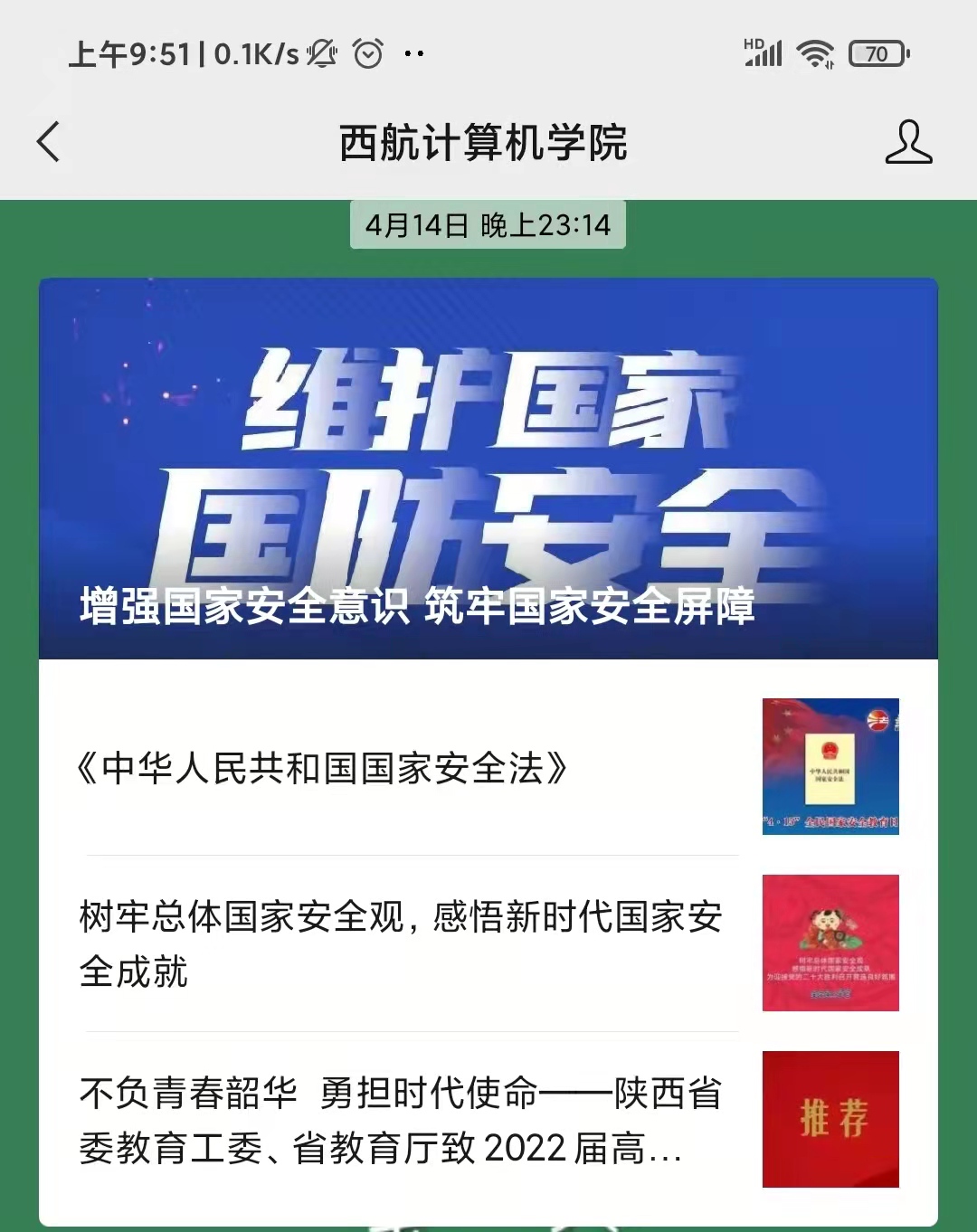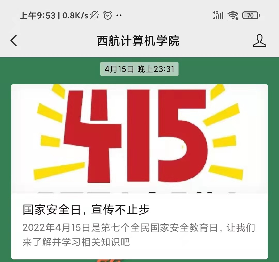 此前,九游体育官网党总支已通过微信公众号等推送了多期国家安全法律法规基本知识和新时代国家安全取得的成就等内容,有针对性地做好国家安全宣传工作。接下来,还将组织师生积极参与“全民国家安全教育日专项答题”等线上宣传教育活动,有效引导师生爱国、励志、求真、力行,切实筑牢总体国家安全观。