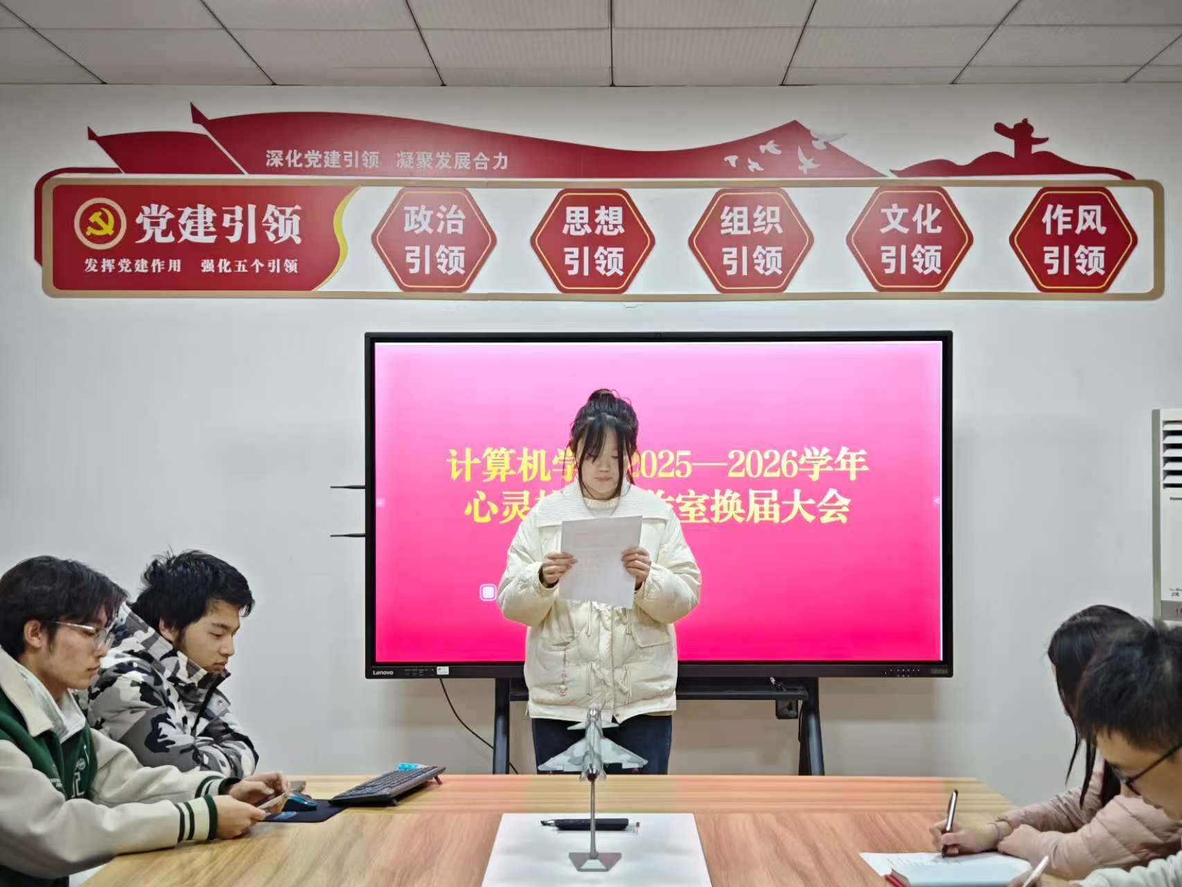 为进一步发挥学院心理健康四级网络作用,12月9日晚,九游体育官网在教学北楼216举办2025-2026学年心灵护航工作室换届大会。学院学工办副主任侯勇、辅导员刘冬妮、李晨阳,2025级心理委员、心灵护航员参加会议,会议由刘冬妮主持。