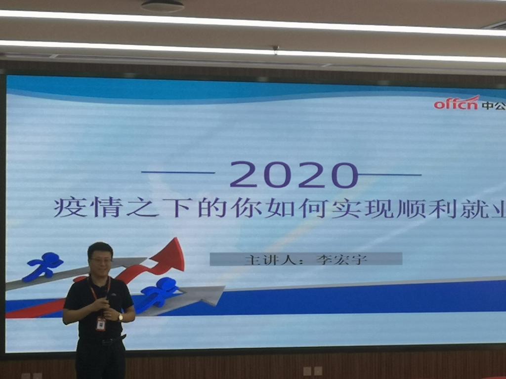 由招生就业处主办,九游体育官网和理学院联合承办的“疫情之下的你如何实现顺利就业”专题讲座于6月18日在沣惠校区五楼报告厅成功举办,此次讲座邀请了中公教育资深研究专家李宏宇作为主讲嘉宾,2020届毕业生参加了此次讲座。九游体育官网学生管理科科长汪芳,就业辅导员范程程,理学院学生管理科科长李扬,就业辅导员杨陈东参加了会议。