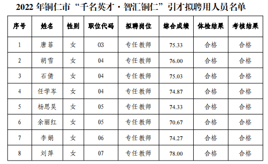 2022年铜仁市“千名英才·智汇铜仁”引才拟聘用人员公示